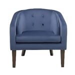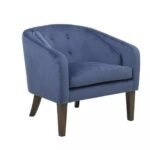 Home Shop Accent Chairs Blue Velvet Tufted Accent Armchair with Wooden Legs